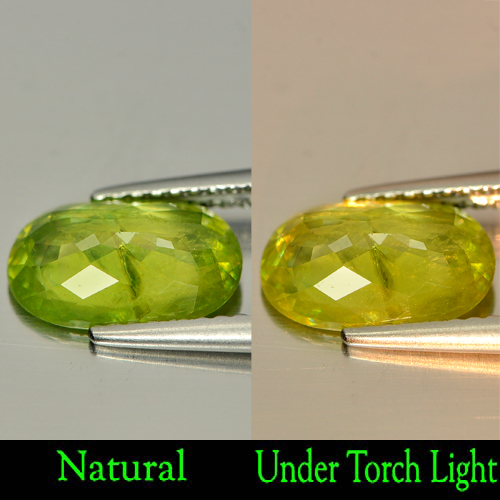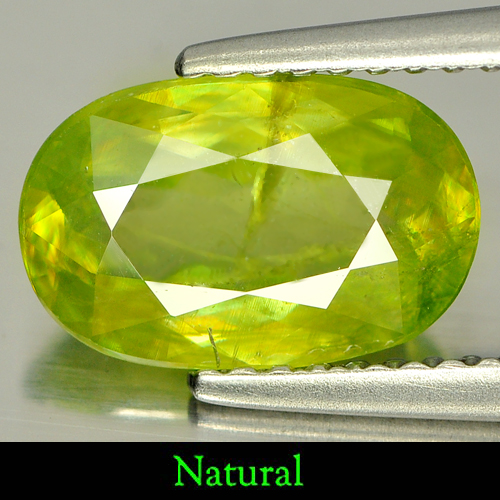 Intense Yellowish Green Titanium Sphene With Rainbow Spark 2.07 Ct. Oval Natural