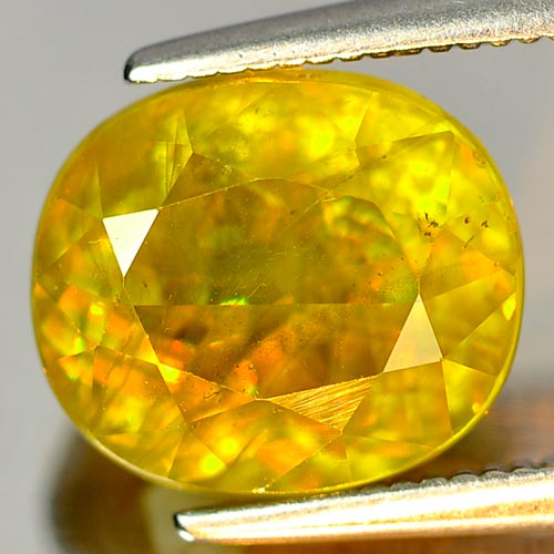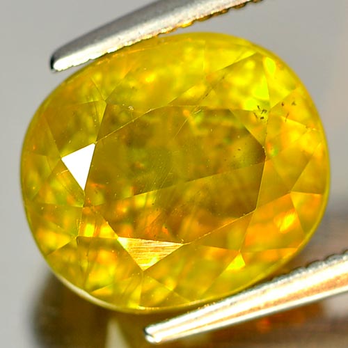 Natural Intense Yellowish Green Titanium Sphene With Rainbow Spark 4.34 Ct.