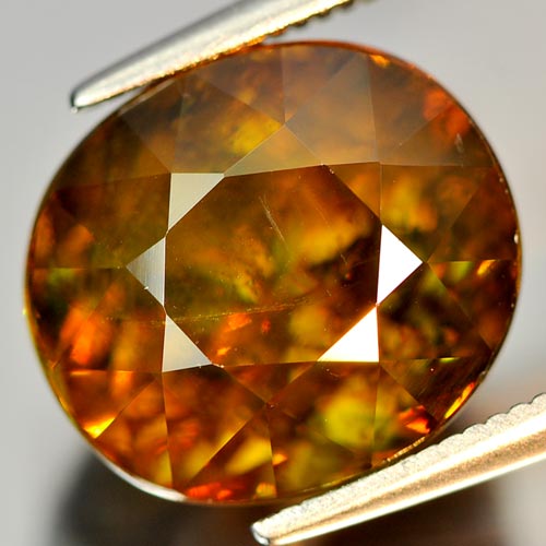 Multi Color Sphene With Rainbow Spark 9.71 Ct. Oval 12.1 x 10.8 Mm. Natural Gem