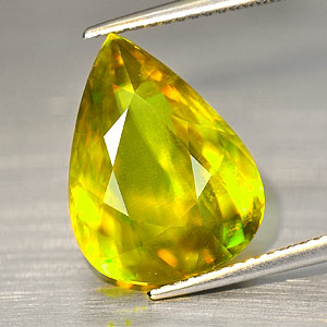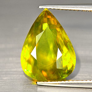 Intense Green Titanium Sphene With Rainbow Spark 8.90 Ct. Pear Shape Natural Gem