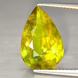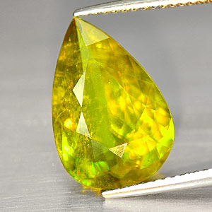 Intense Green Titanium Sphene With Rainbow Spark 6.33 Ct. Pear Shape Natural Gem