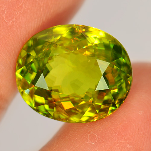 Multi Color Sphene 13.73 Ct. VVS Oval 15.7 x 13.2 Mm. Natural Unheated Gemstone