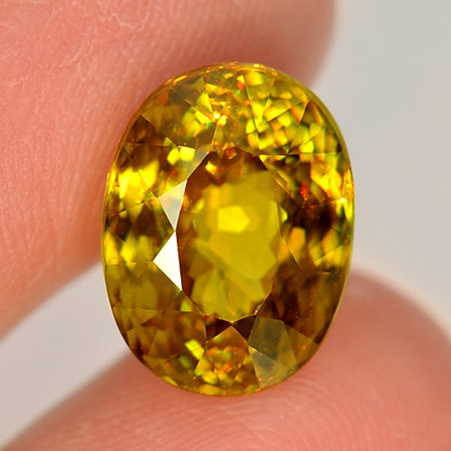 Multi Color Sphene 6.76 Ct. VVS Oval 12.6 x 9.5 Mm. Natural Gemstone Unheated