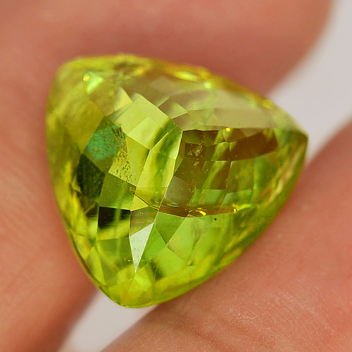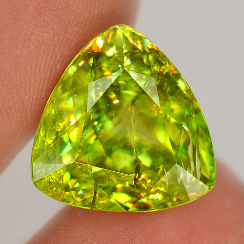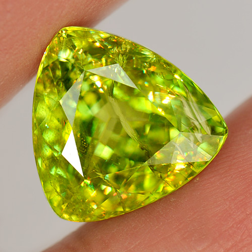 11.83 Ct. Trilliant Natural Green Titanium Sphene Rainbow Spark Gem Madagascar