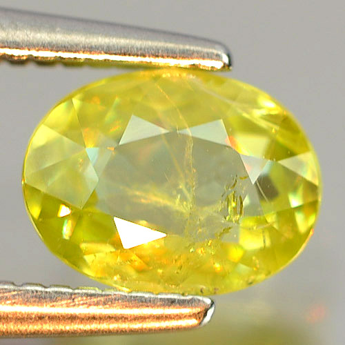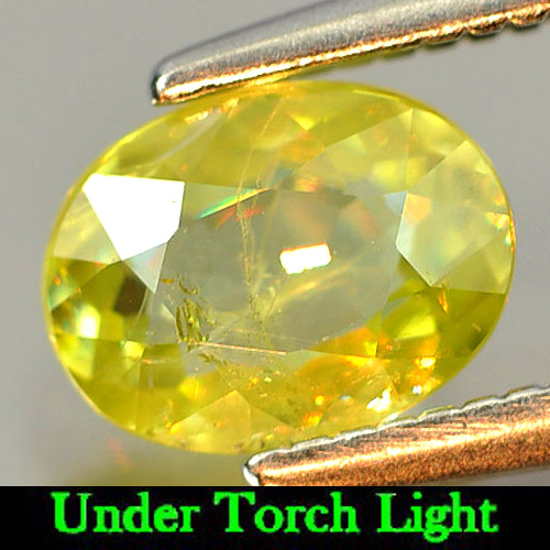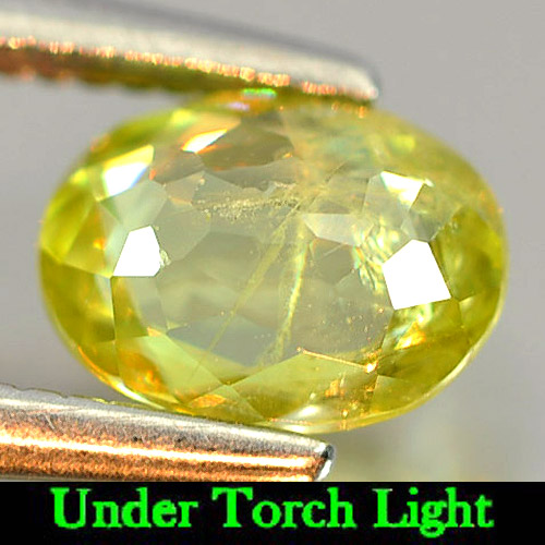 Natural Gem 0.73 Ct. Oval Shape Yellowish Green Titanium Sphene Rainbow Spark