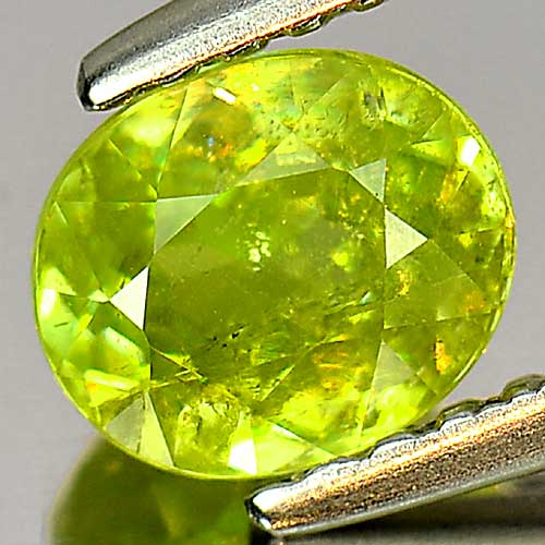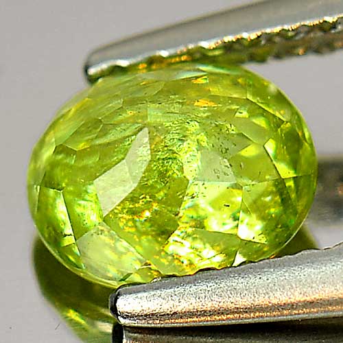 0.90 Ct. Oval Natural Yellowish Green Titanium Sphene With Rainbow Spark
