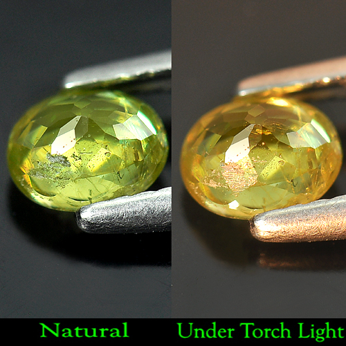 Unheated 0.68 Ct. Oval Natural Yellowish Green Titanium Sphene Rainbow Spark