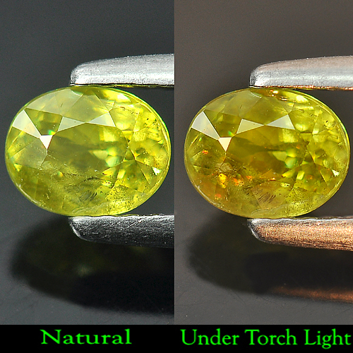 0.74 Ct. Beautiful Oval Natural Greenish Yellow Titanium Sphene Rainbow Spark