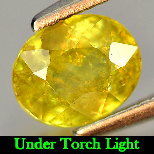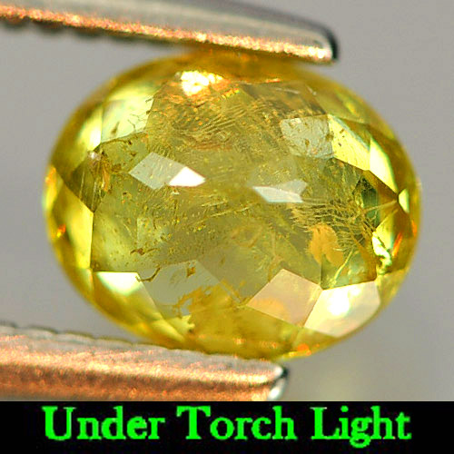 0.87 Ct. Good Color Oval Natural Yellowish Green Titanium Sphene Rainbow Spark