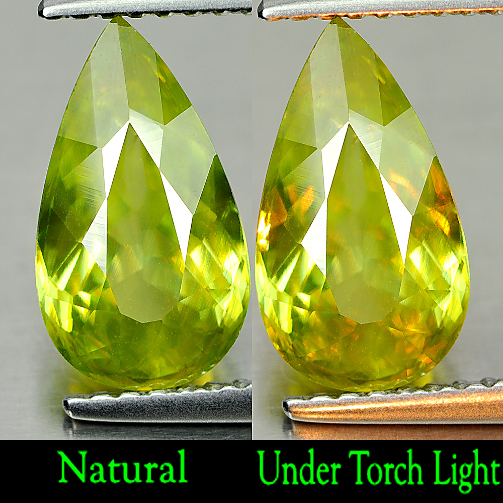 Yellow Green Sphene With Rainbow Spark 2.06 Ct. Pear Shape Natural Gemstone