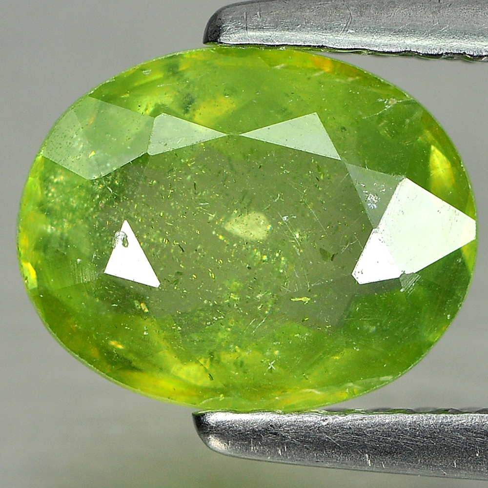 Green Titanium Sphene With Rainbow Spark 1.58 Ct. Oval Shape Natural Gemstone