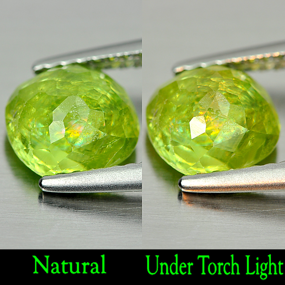 1.80 Ct. Attractive Natural Green Titanium Sphene With Rainbow Spark Oval Shape