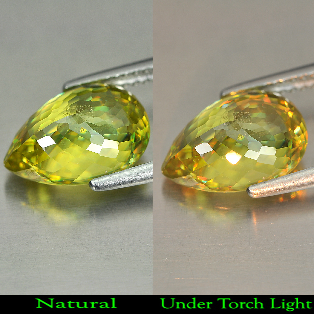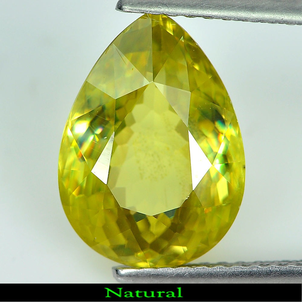 Yellow Green Sphene With Rainbow Spark 4.04 Ct. Pear Shape 12 x 8.8 Mm. Natural