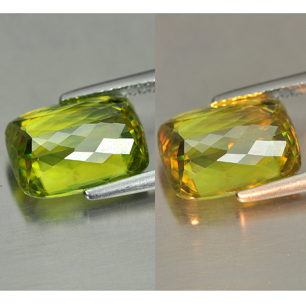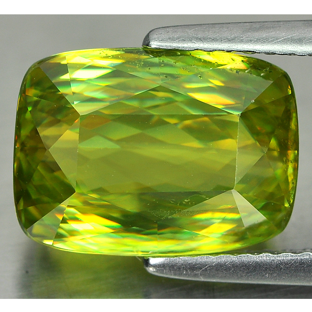 Green Sphene With Rainbow Spark 5.84 Ct. Cushion Shape 11.8 x 8.6 Mm Natural Gem