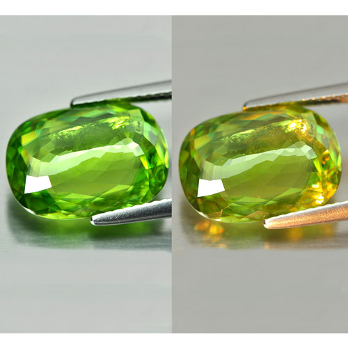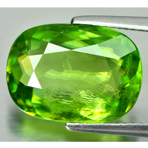 Green Sphene 6.80 Ct. Red Spark Oval 14.6 x 10.5 Mm. Natural Unheated Madagascar