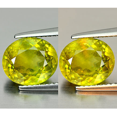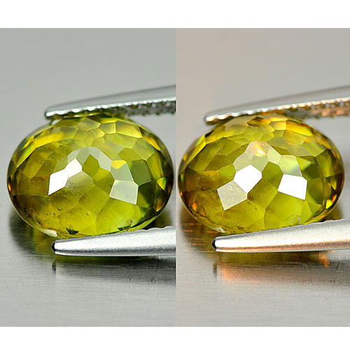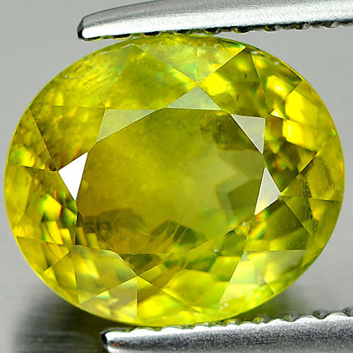 Sphene Yellow Green With Rainbow Spark 3.35 Ct. Oval 9.6 x 8.3 Mm. Natural Gem