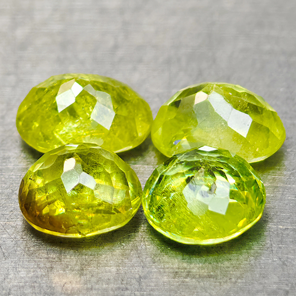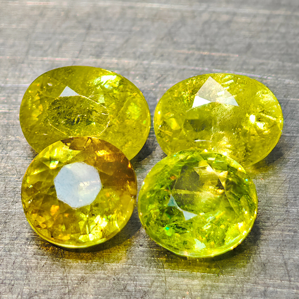 Natural Sphene Intense Yellow Green Titanium Red Spark 3.02 Ct. 4 Pcs Mixed