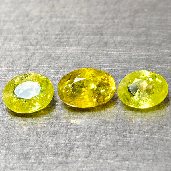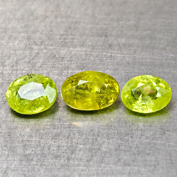 Natural Sphene Intense Green Titanium Red Spark 1.68 Ct. 3 Pcs Oval Shape