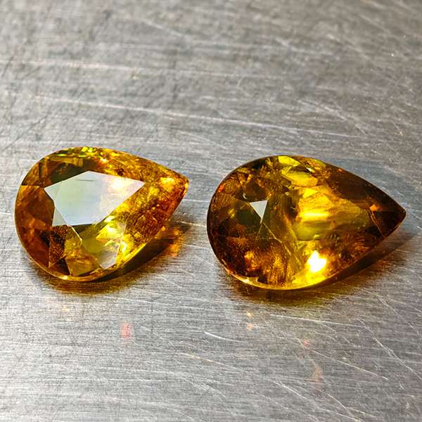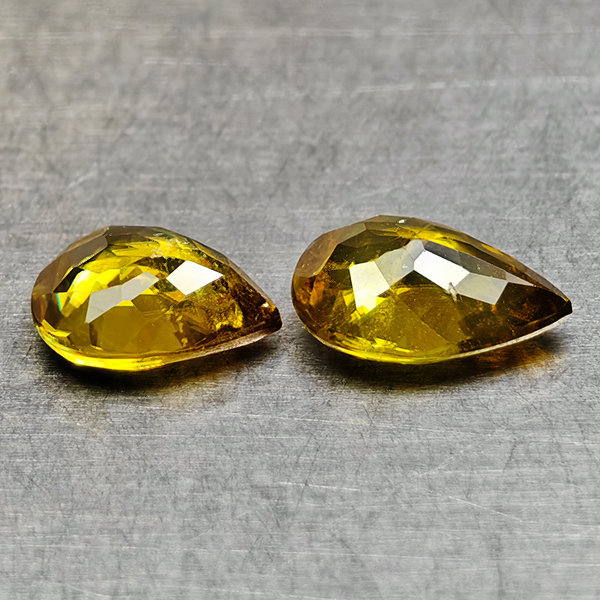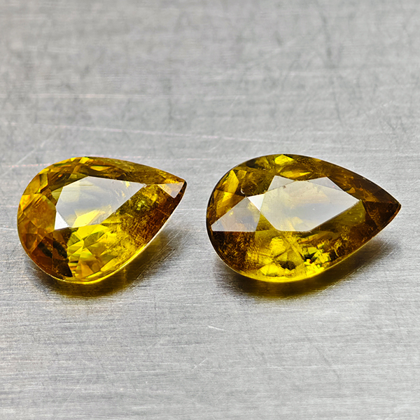 Natural Sphene Intense Yellow Green Titanium Red Spark 0.97 Ct. 2 Pcs Pear Shape