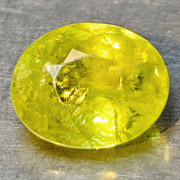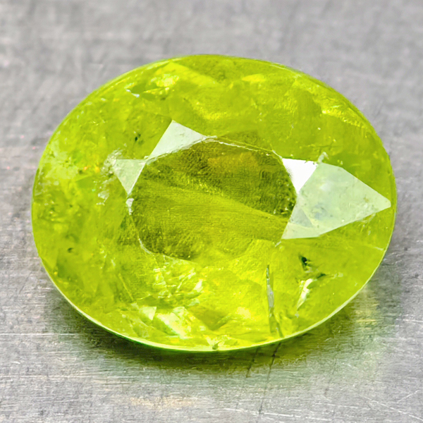 Natural Sphene Intense Yellow Green Titanium Red Spark 0.74 Ct. Oval Shape
