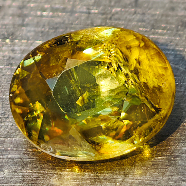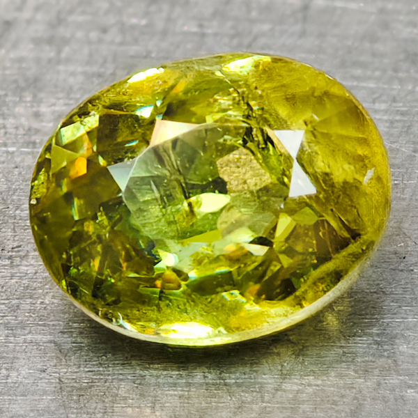 Natural Sphene Intense Yellow Green Titanium Red Spark 0.93 Ct. Oval Shape
