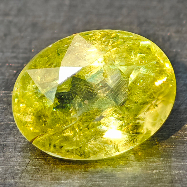 Natural Sphene Intense Yellow Green Titanium Red Spark 0.85 Ct. Oval Shape