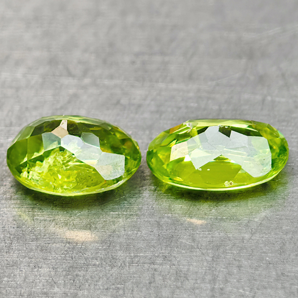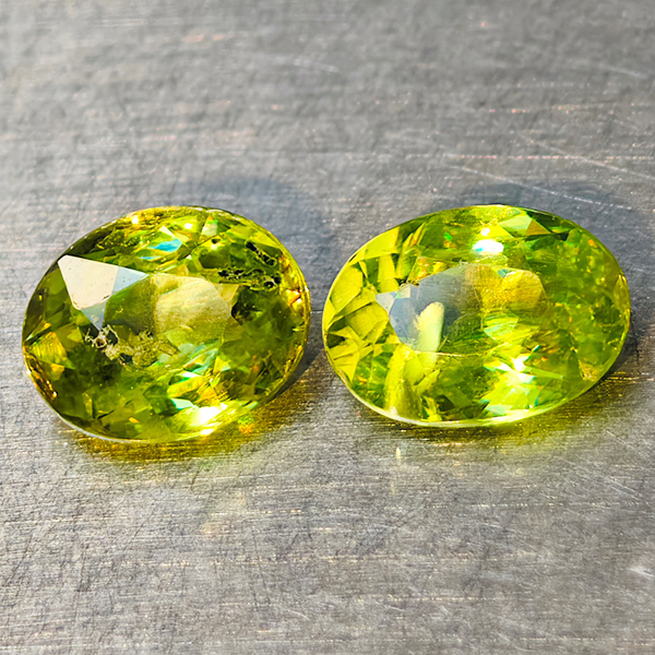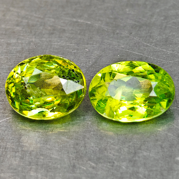 Natural Sphene Intense Yellow Green Titanium Red Spark 1.17 Ct. 2 Pcs Oval Shape