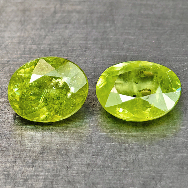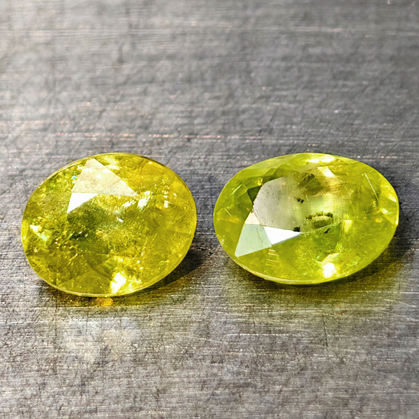 Natural Sphene Intense Yellow Green Titanium Red Spark 1.45 Ct. 2 Pcs Oval Shape