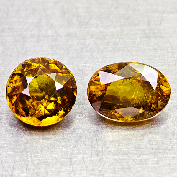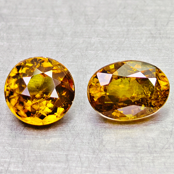 Natural Green Titanium Sphene With Rainbow Spark 1.65 Ct. 2 Pcs Mixed Shape Gems
