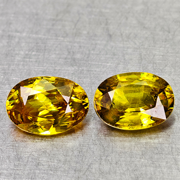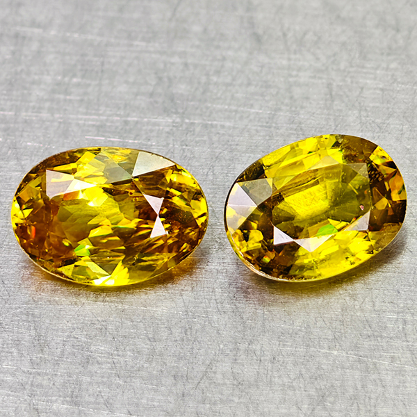 Natural Green Titanium Sphene With Rainbow Spark 1.62 Ct. 2 Pcs Oval Shape Gems