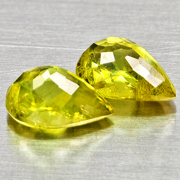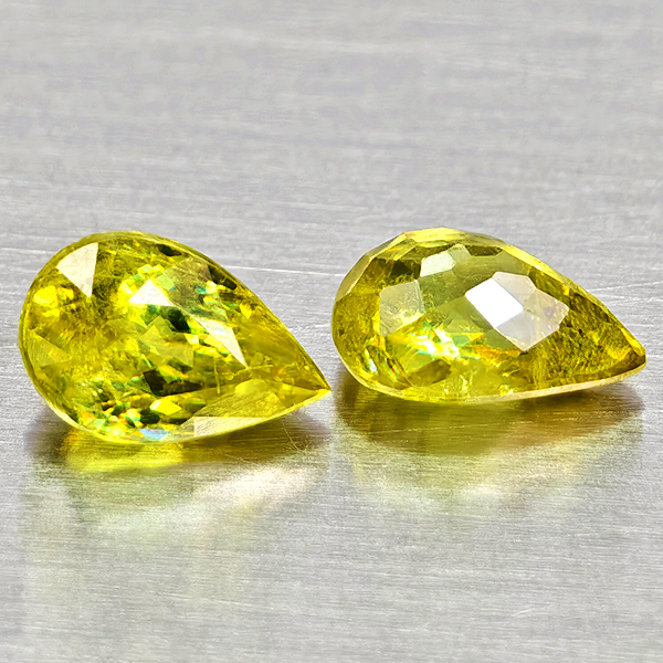 Natural Yellowish Green With Rainbow Spark Sphene 1.30 Ct. 2 Pcs Pear Shape Gems