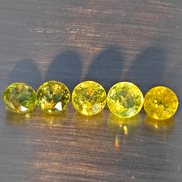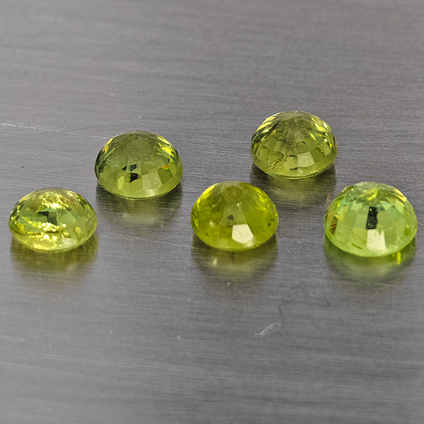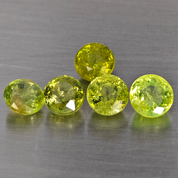 Natural Greenish Yellow Titanium Sphene Rainbow Spark 1.87 Ct. 5 Pcs Round Shape 4.1 Mm Gemstones