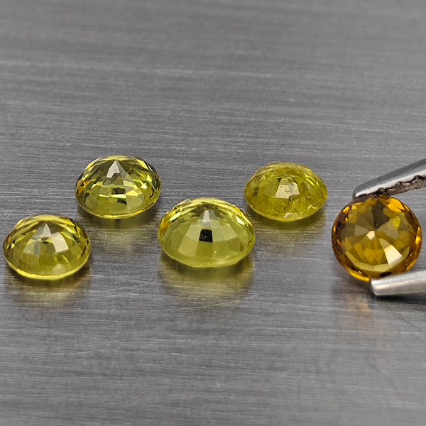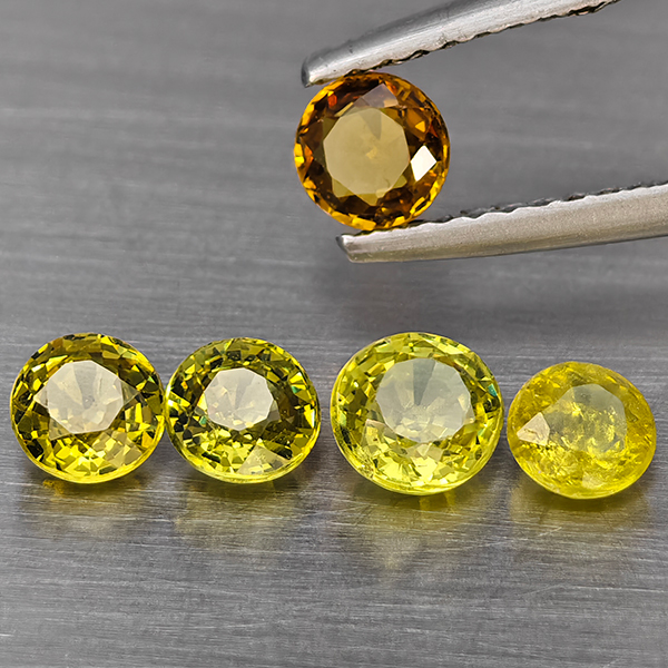 Natural Greenish Yellow Titanium Sphene Rainbow Spark 1.68 Ct. 5 Pcs Round Shape 3.3 Mm Gemstones