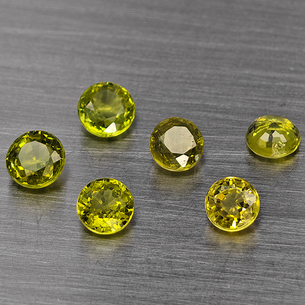 Natural Greenish Yellow Titanium Sphene Rainbow Spark 1.70 Ct. 6 Pcs Round Shape 4 Mm Gemstones