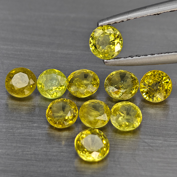 Natural Greenish Yellow Titanium Sphene Rainbow Spark 3.51 Ct. 10 Pcs Round Shape 4 Mm Gemstones