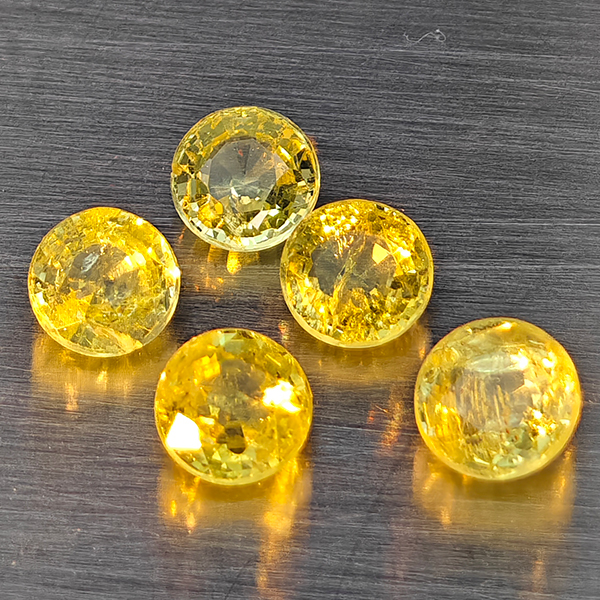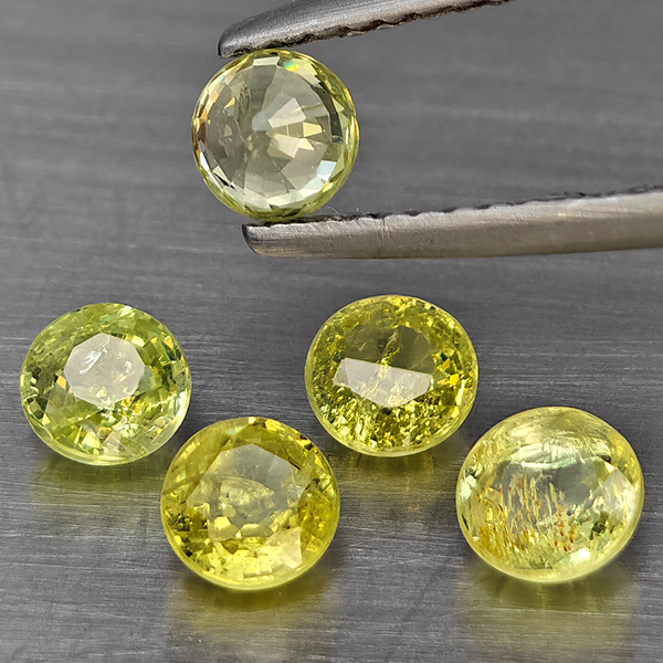 Natural Greenish Yellow Titanium Sphene Rainbow Spark 1.88 Ct. 5 Pcs Round Shape 4.2 Mm Gemstones