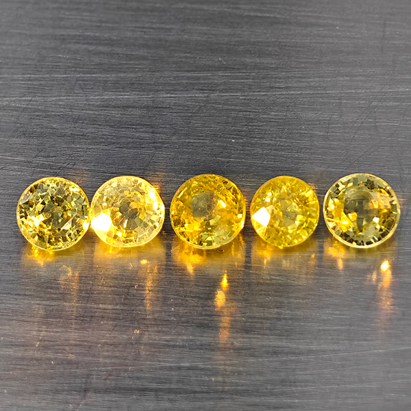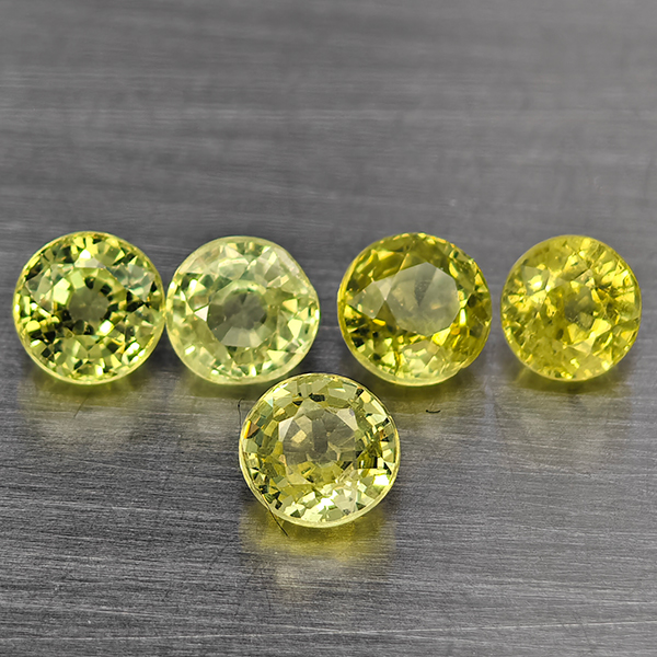 Natural Greenish Yellow Titanium Sphene Rainbow Spark 1.64 Ct. 5 Pcs Round Shape 4 Mm Gemstones