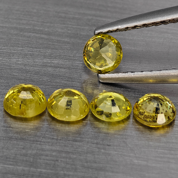 Natural Greenish Yellow Titanium Sphene Rainbow Spark 1.36 Ct. 5 Pcs Round Shape 4 Mm Gemstones