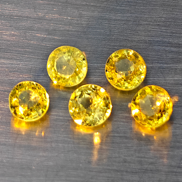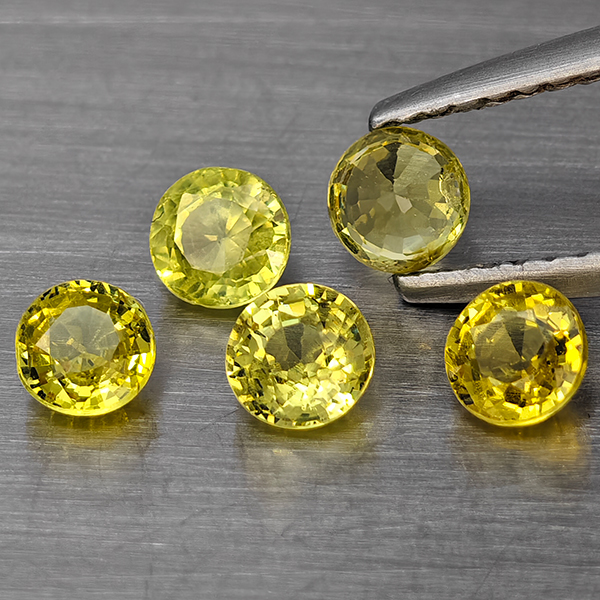 Natural Greenish Yellow Titanium Sphene Rainbow Spark 1.41 Ct. 5 Pcs Round Shape 3.9 Mm Gemstones