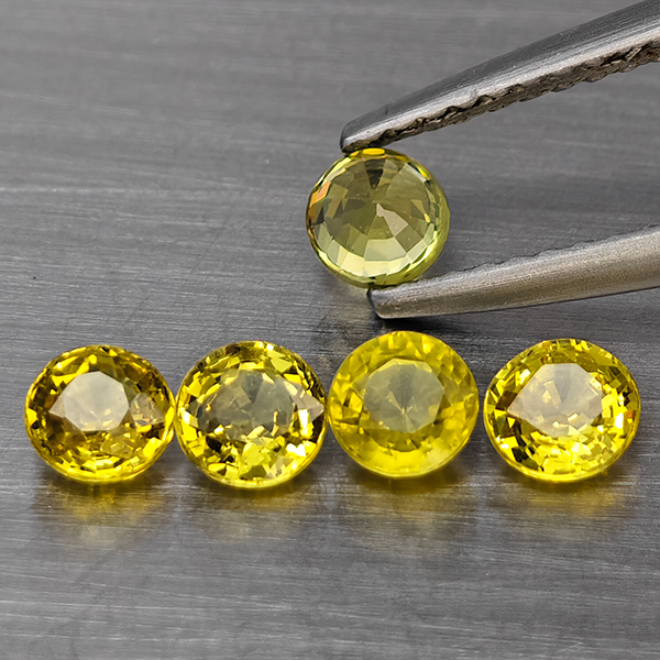 Natural Greenish Yellow Titanium Sphene Rainbow Spark 1.23 Ct. 5 Pcs Round Shape 3.8 Mm Gemstones