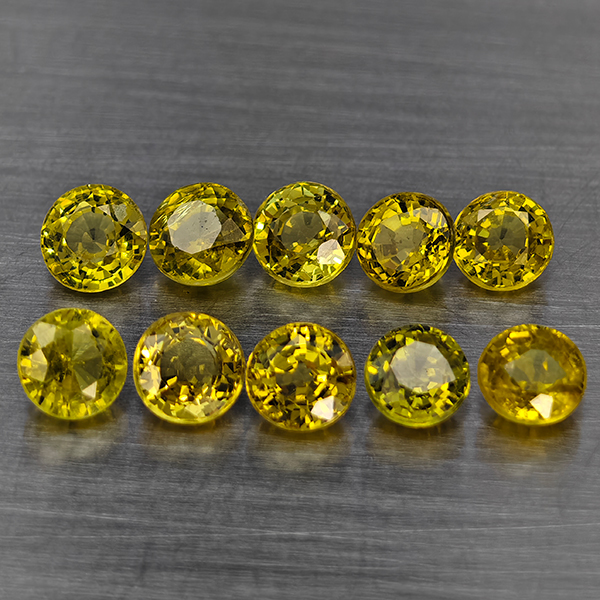 Natural Greenish Yellow Titanium Sphene Rainbow Spark 2.58 Ct. 10 Pcs Round Shape 3.7 Mm Gemstones