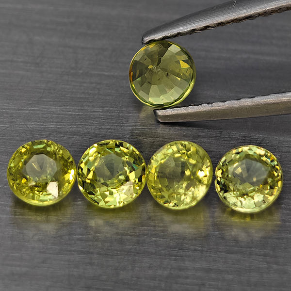 Natural Greenish Yellow Titanium Sphene Rainbow Spark 1.76 Ct. 5 Pcs Round Shape 4 Mm Gemstones