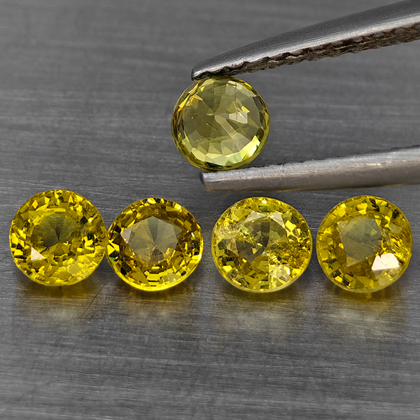 Natural Greenish Yellow Titanium Sphene Rainbow Spark 1.60 Ct. 5 Pcs Round Shape 4 Mm Gemstones