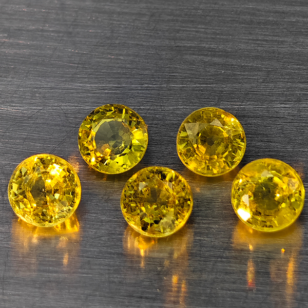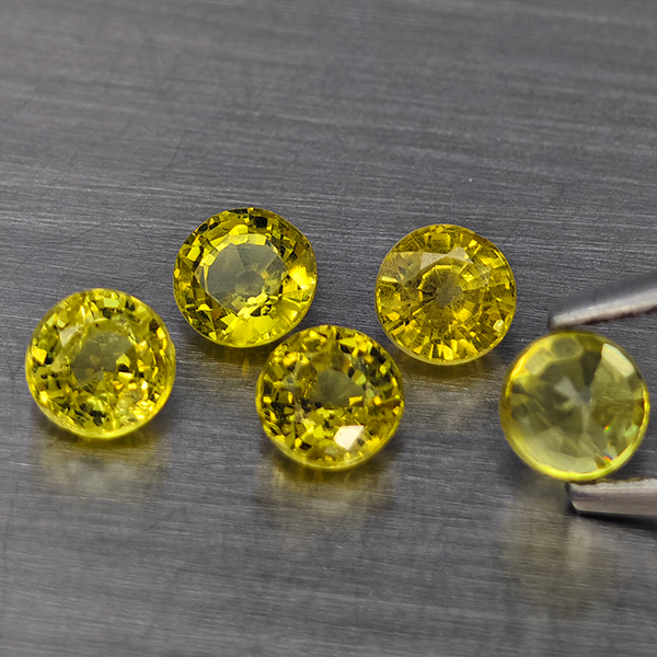Natural Greenish Yellow Titanium Sphene Rainbow Spark 1.62 Ct. 5 Pcs Round Shape 4 Mm Gemstones