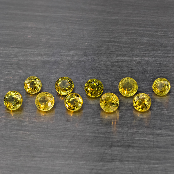 Natural Greenish Yellow Titanium Sphene Rainbow Spark 1.94 Ct. 10 Pcs Round Shape 3.3 Mm Gemstones