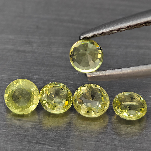 Natural Greenish Yellow Titanium Sphene Rainbow Spark 1.03 Ct. 5 Pcs Round Shape 3.3 Mm Gemstones