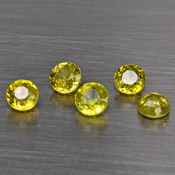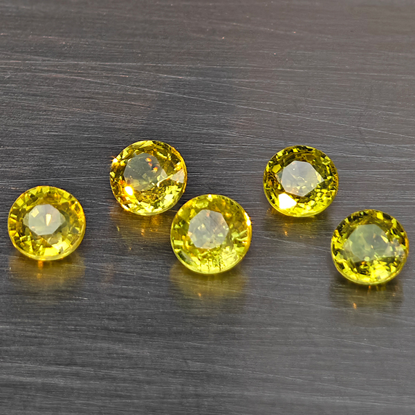 Natural Greenish Yellow Titanium Sphene Rainbow Spark 1.46 Ct. 5 Pcs Round Shape 3.9 Mm Gemstones