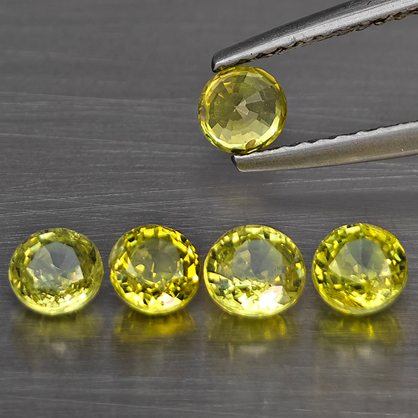 Natural Greenish Yellow Titanium Sphene Rainbow Spark 1.69 Ct. 5 Pcs Round Shape 4 Mm Gemstones