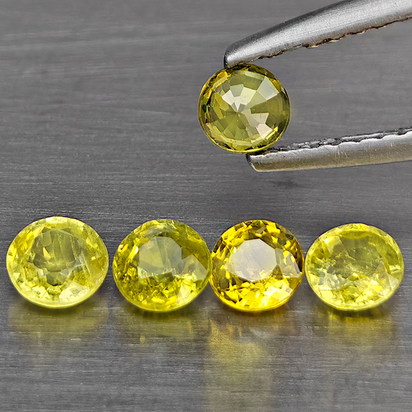 Natural Greenish Yellow Titanium Sphene Rainbow Spark 1.79 Ct. 5 Pcs Round Shape 4 Mm Gemstones