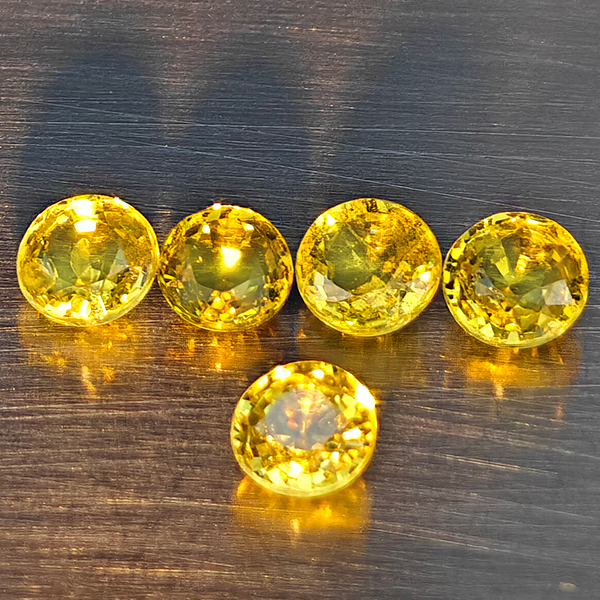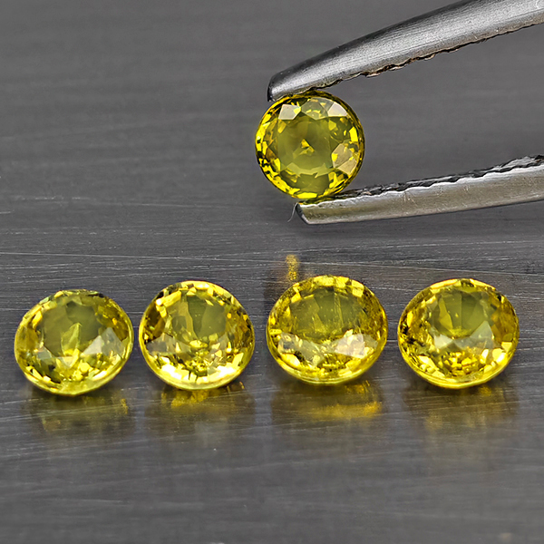 Natural Greenish Yellow Titanium Sphene Rainbow Spark 1.47 Ct. 5 Pcs Round Shape 3.9 Mm Gemstones